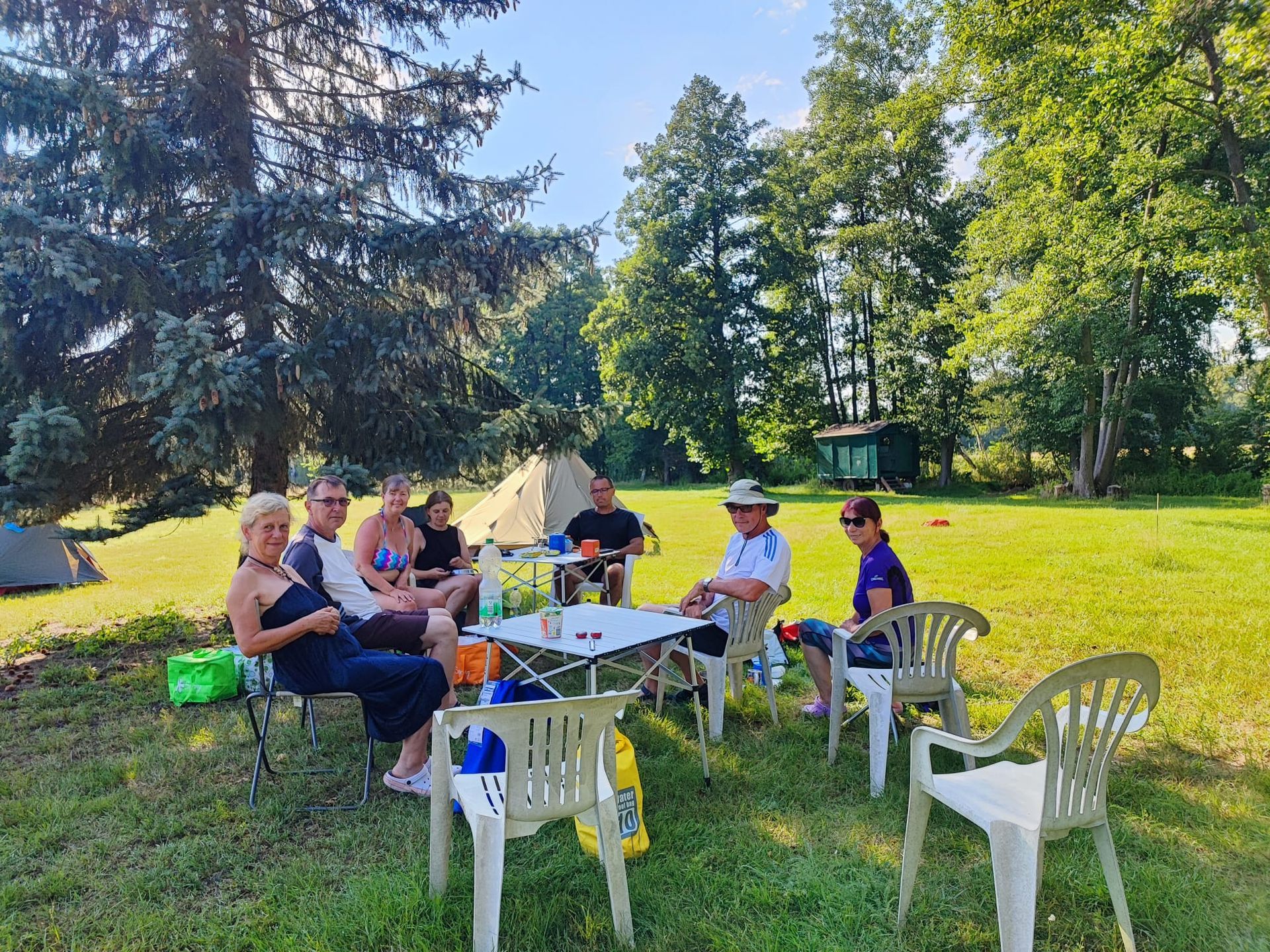 Es war wieder sehr heiß, und nach Aufbau der Zelte haben wir ein erfrischendes Bad in der Spree genommen. Abends wurden die Bratwürste auf den Grill gelegt und ein weiterer ereignisreicher Tag neigte sich dem Ende zu.